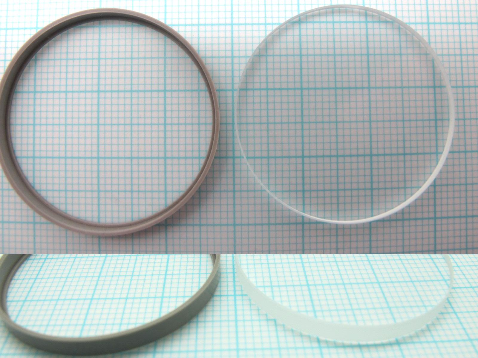Das Glas ist 32 mm, 2,8 mm dick und ist mit Dichtung